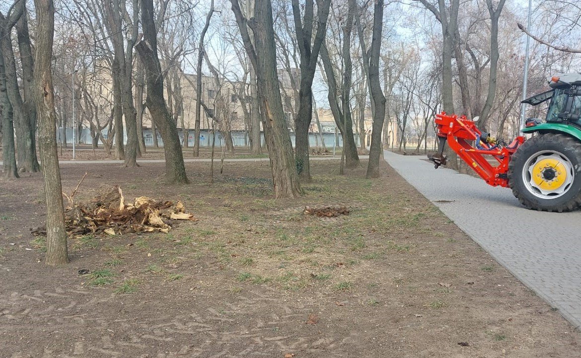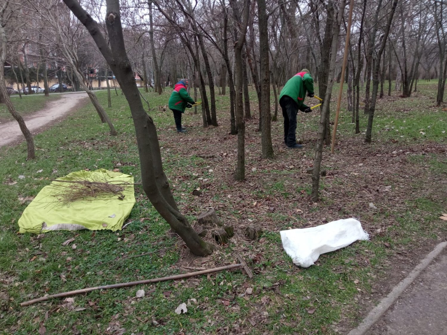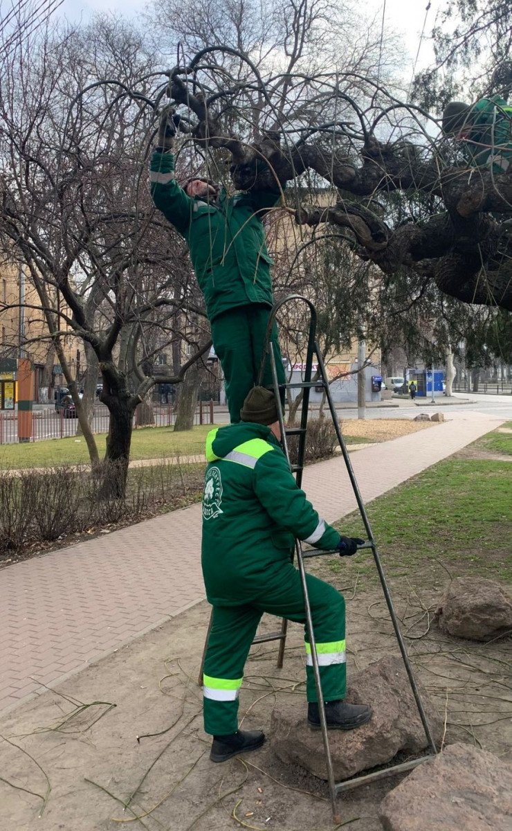 Озеленювачі КП «Міськзелентрест» наводять лад на зелених зонах і доглядають за деревами та рослинами. Наразі виконуються планові роботи з очищення газонів від торішнього листя й випадкового сміття, підрізання дерев, видалення порослі, корчування пнів тощо.