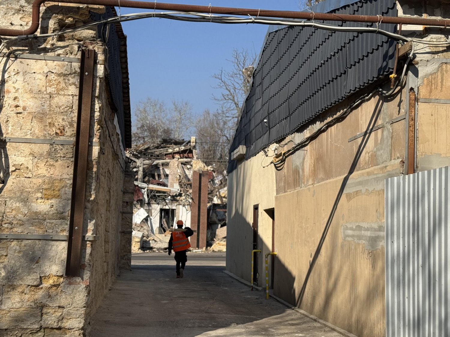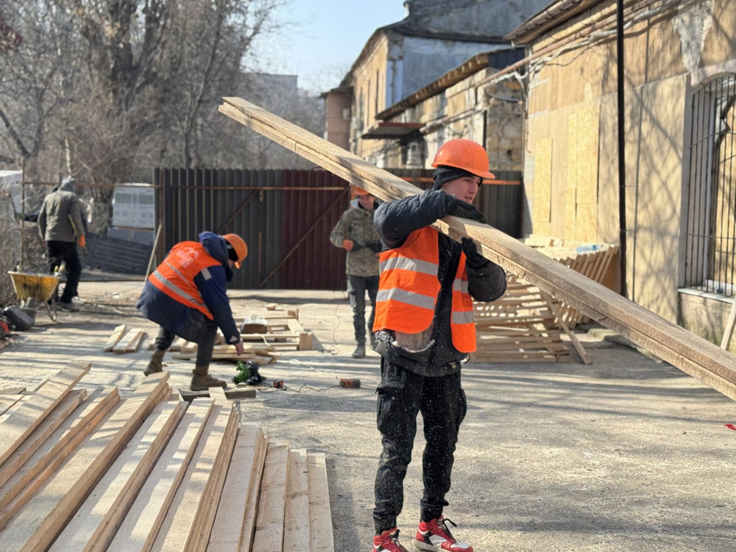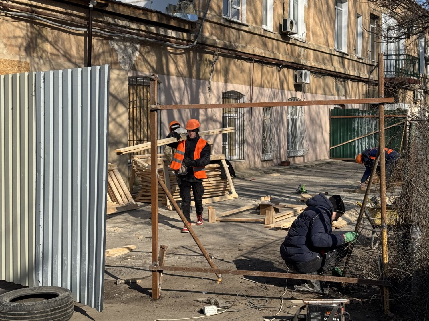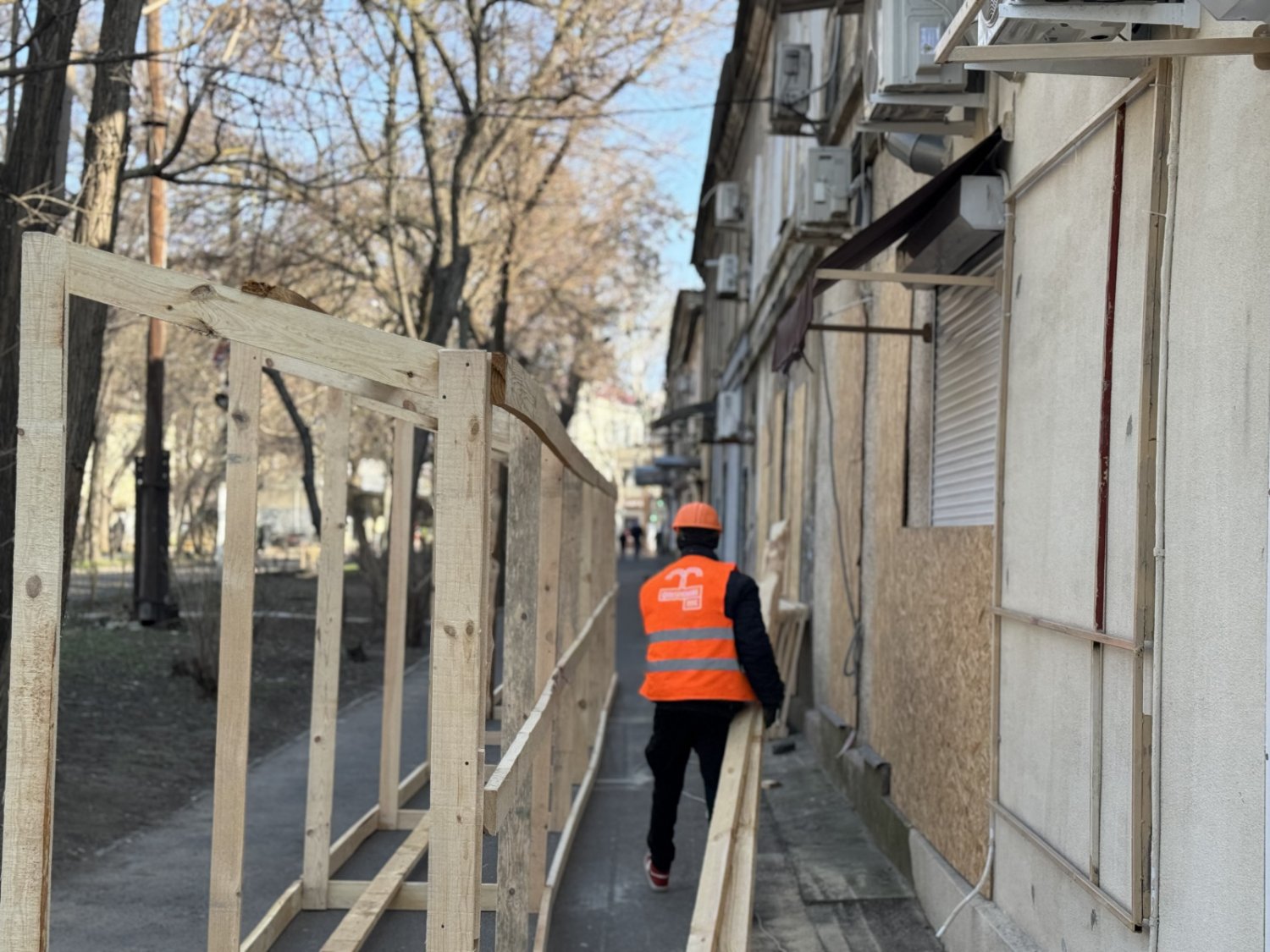 Заступник директора Департаменту міського господарства Одеської міської ради Артем Захаров розповів, що по периметру об'єкта вже встановлено паркан та проводяться підготовчі роботи для підсилення стін першого поверху.