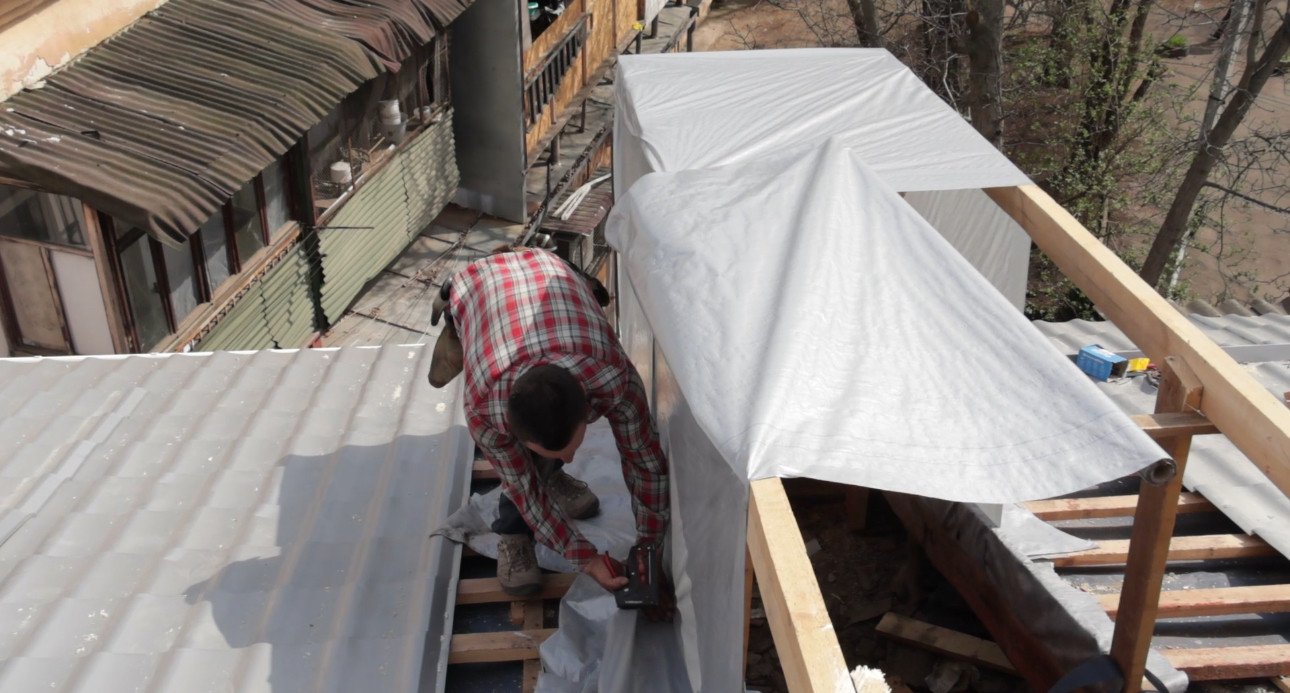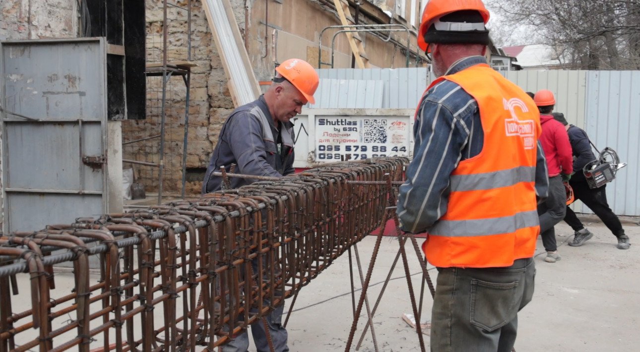 На об’єкті вже виконано близько третини капітального ремонту покрівлі. Наразі проводяться роботи з підсилення стін першого поверху, в’яжуть арматурний каркас для монолітного міжповерхового залізобетонного поясу.