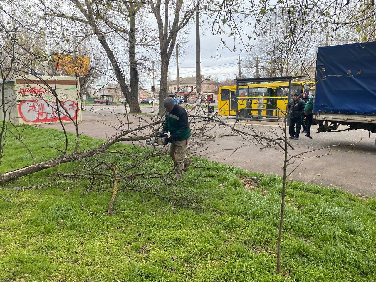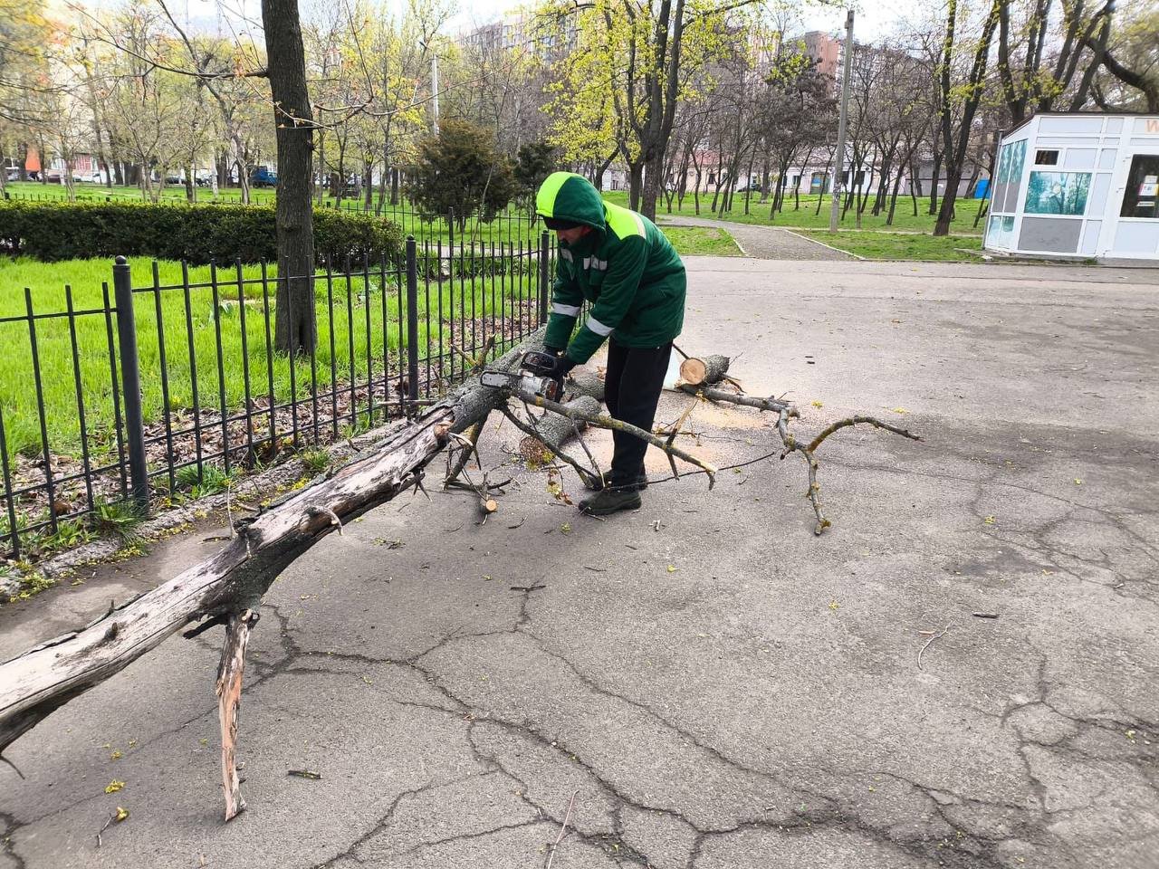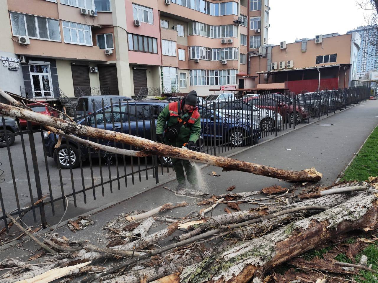 Найперше фахівці КП «Міськзелентрест» звільняють від повалених дерев дороги, автомагістралі, пішохідні доріжки, а також прибирають дерева, які заважають проїзду до соціально значущих об'єктів.