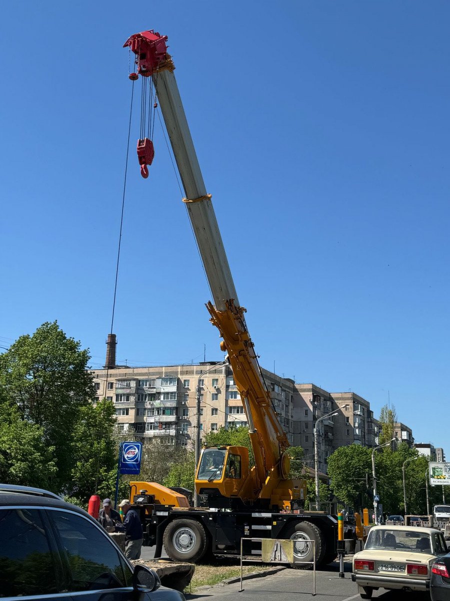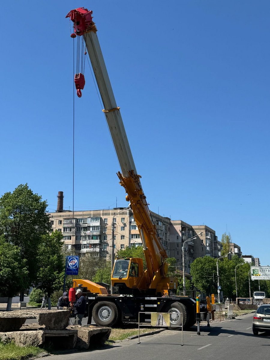 Роботи проводяться за допомогою нового сучасного крана Kato CR250 вантажністю 25 тонн та довжиною стріли до 40 метрів, наданого підприємству в рамках співпраці з Jica (Японія).
