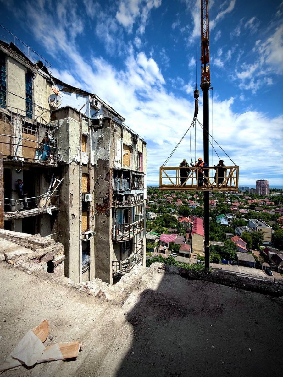 «З 16 травня на об’єкті працює великовантажний кран. Протиаварійні роботи завершені, триває стабілізація будинку. За планом, до 10 червня мешканці першого під’їзду зможуть повернутися до своїх квартир», — зазначив міський голова.