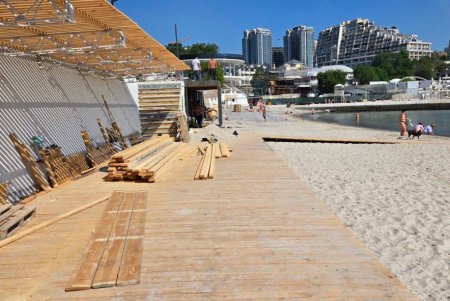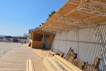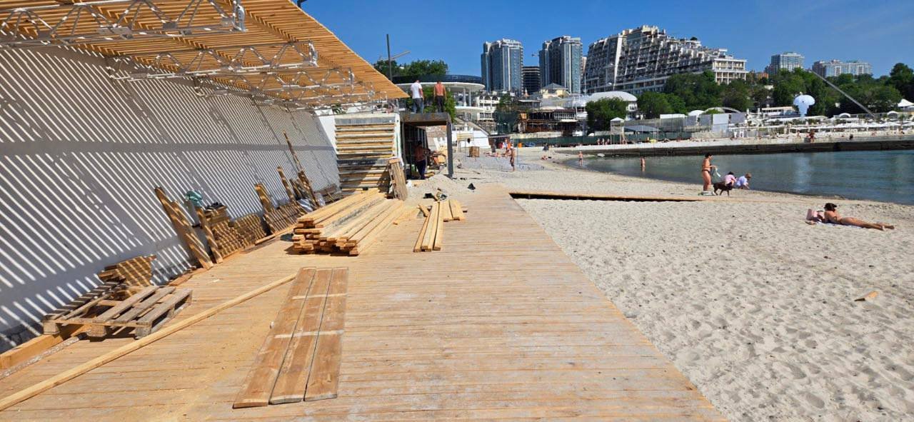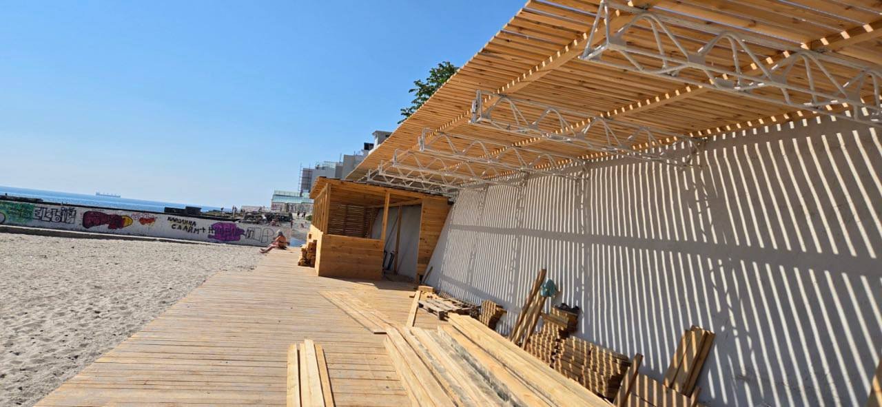 - на комунальній ділянці пляжу виконуються роботи з облаштування навісу для маломобільних груп населення;