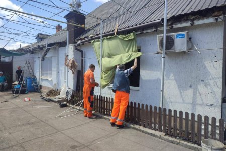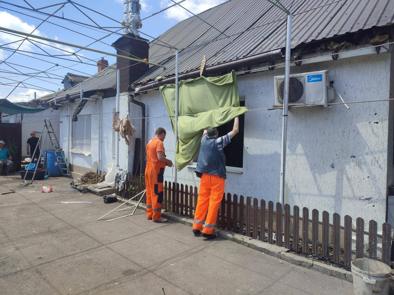 Станом на 11:00 з понад 230 пошкоджених вікон закрито більш ніж половину, роботи тривають.