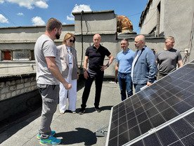Учасники наради відвідали багатоквартирні будинки, де вже встановлені дахові сонячні електростанції.