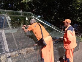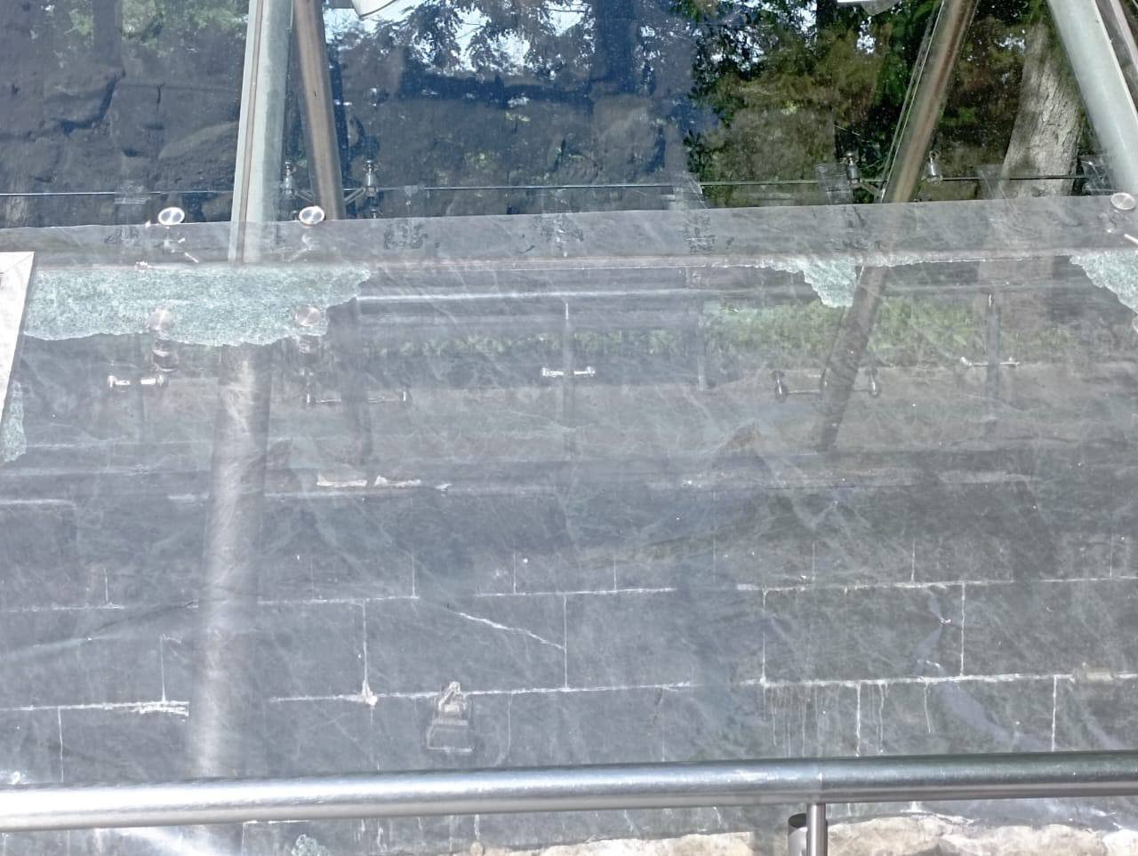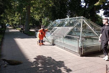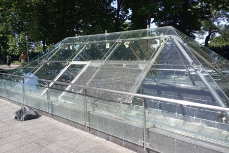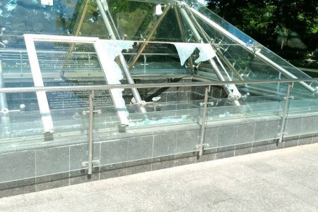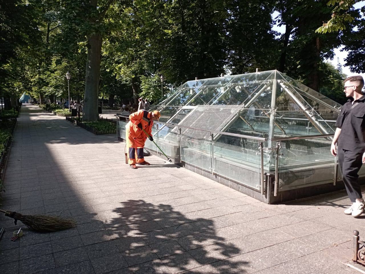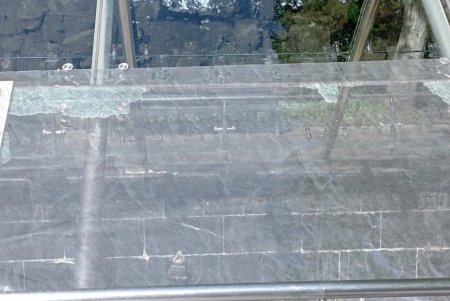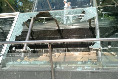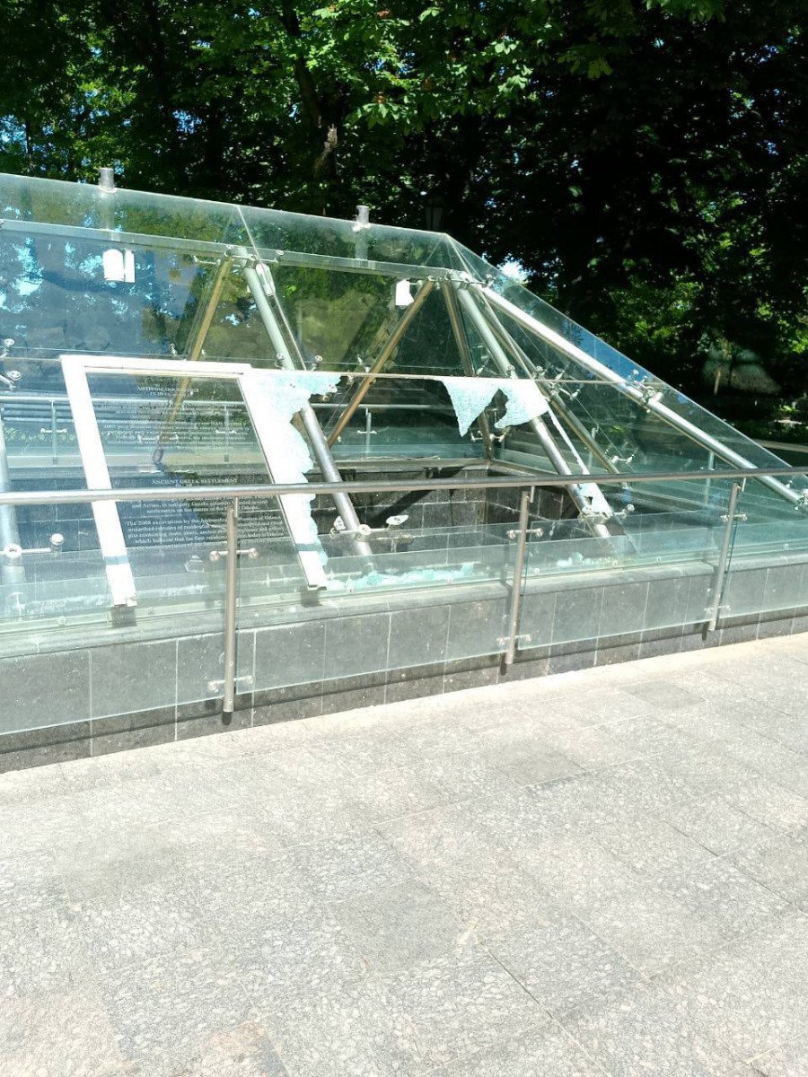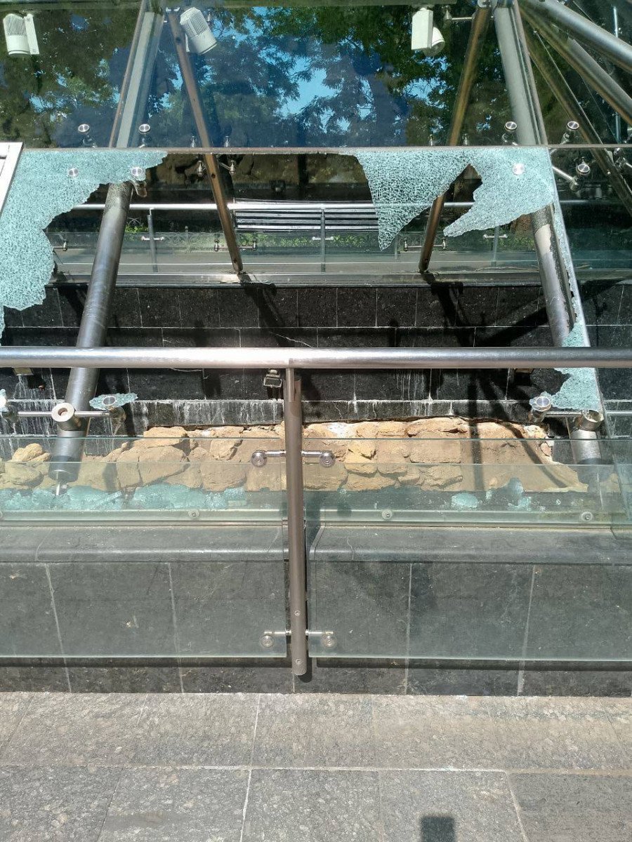 Наразі працівники Комунального підприємства «Міські дороги» закрили саркофаг плівкою та прибрали бите скло.