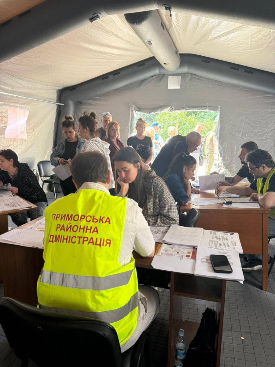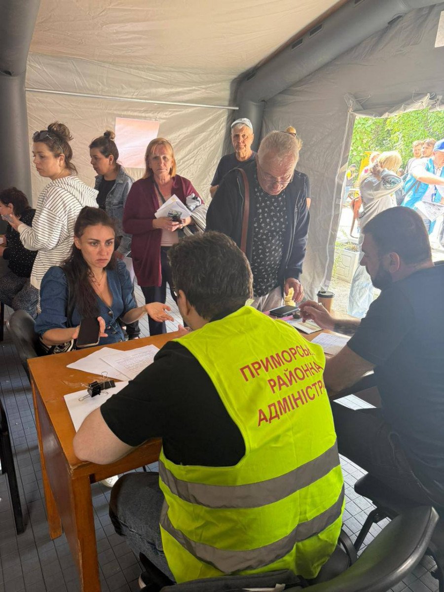 Співробітники райадміністрацій приймають заяви на оформлення матеріальної допомоги за Міською цільовою програмою «Незламна Одеса», надають консультації щодо пакету документів, який необхідно зібрати для оформлення за програмою єВідновлення.