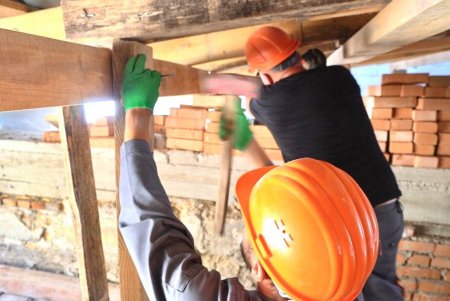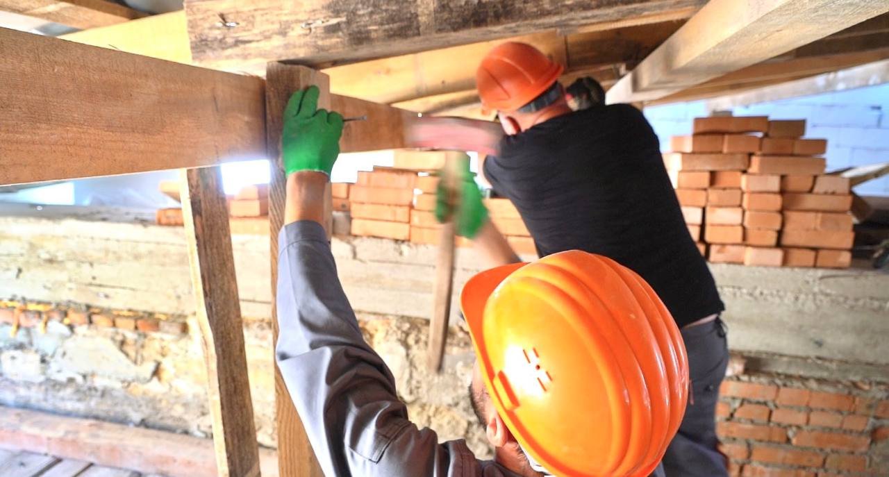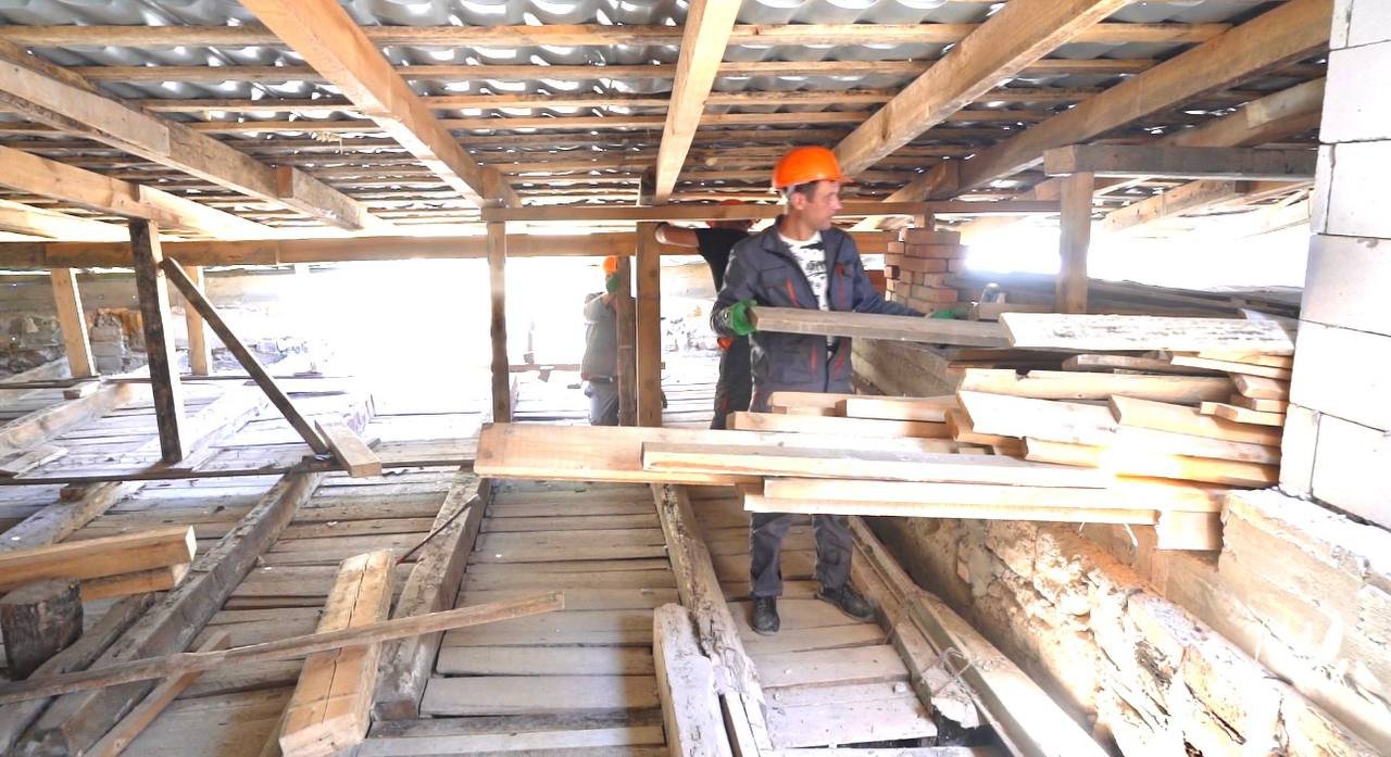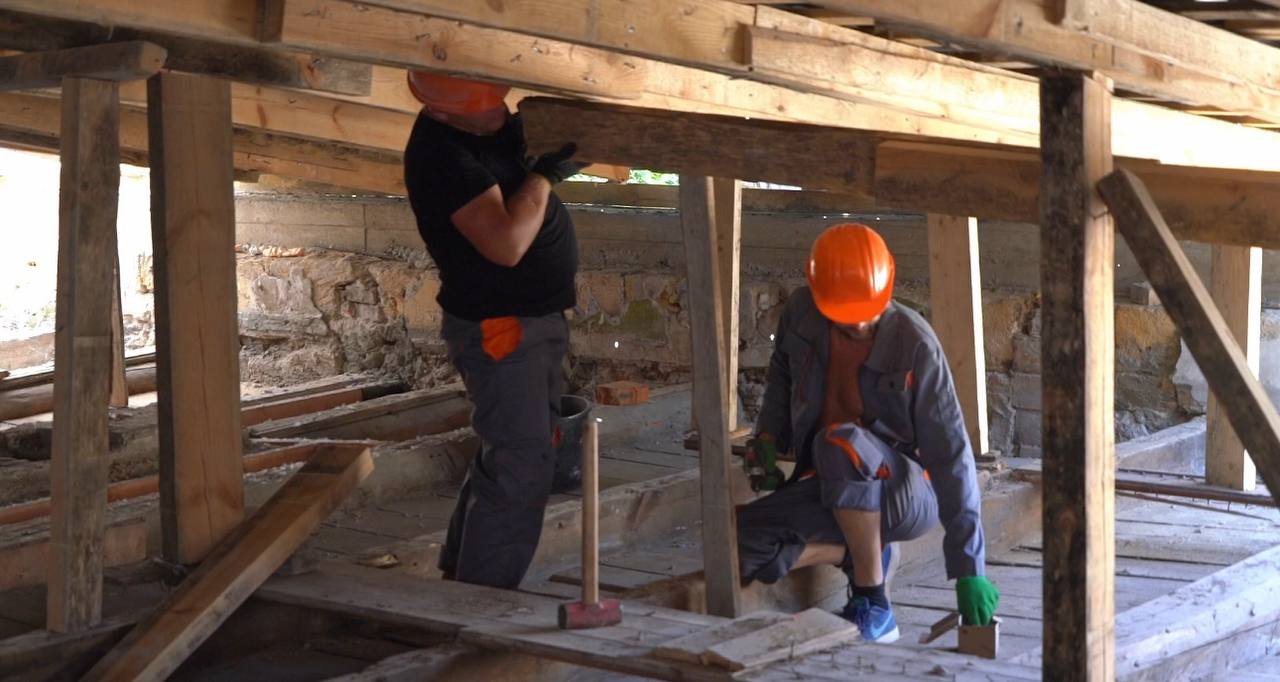 Наступним етапом передбачено підсилення та утеплення наявного дерев’яного перекриття, а також мурування газобетонних стін другого поверху.