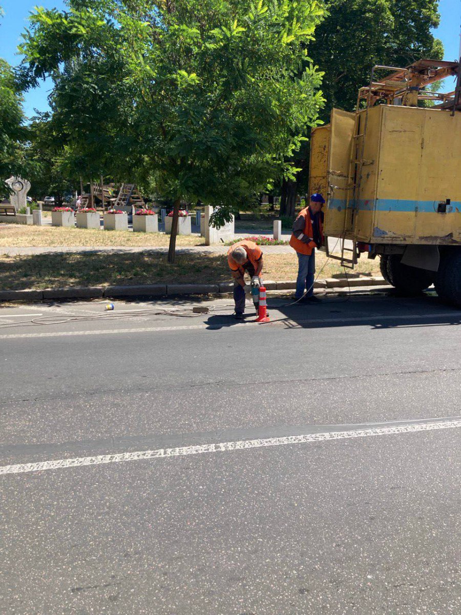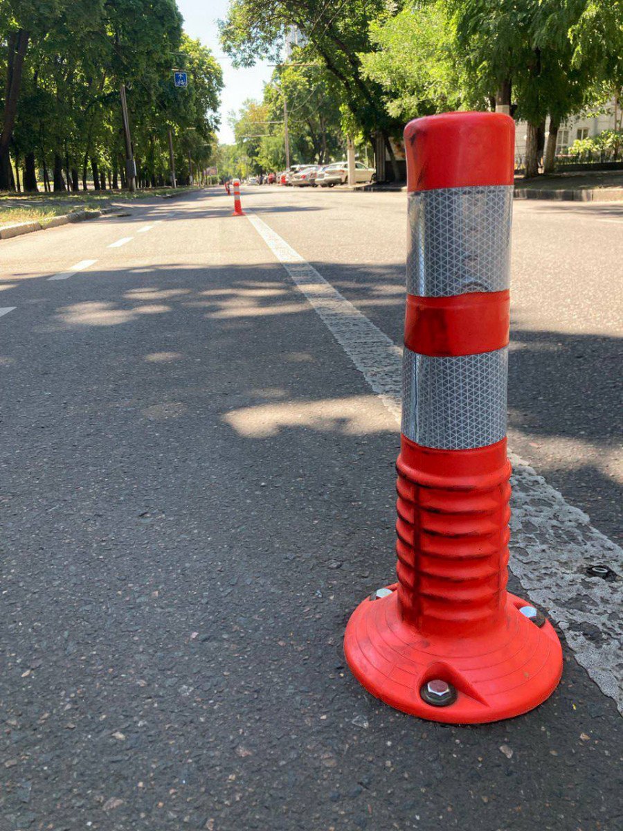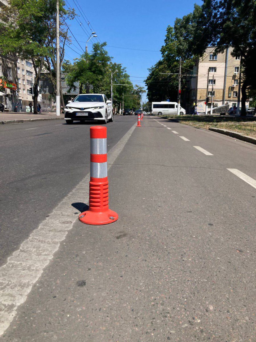 Наразі завершено встановлення стовпчиків-делініаторів вздовж велосмуги на вул. Канатній, від вул. Пироговської до 2-ї станції Великого Фонтану.