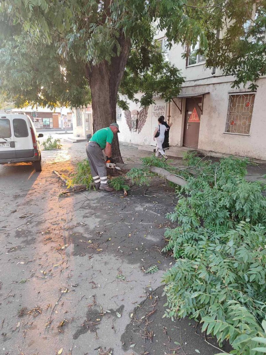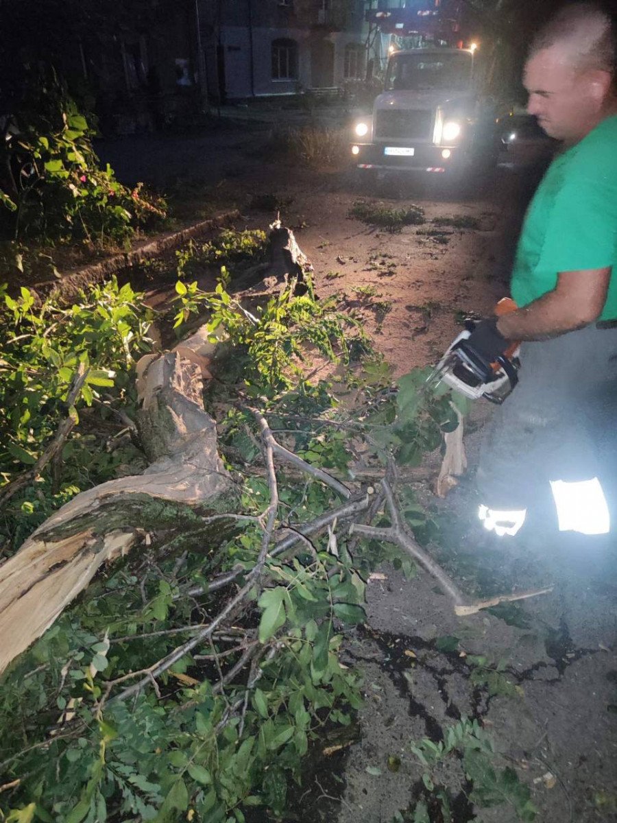Аварійні ситуації ліквідовують фахівці Комунальних підприємств «Міськзелентрест», «Міські дороги» і «Житлово-комунальні сервіси» за своїми адресами. Комунальники проводять розпил повалених дерев та їх вивезення, а також прибирання вулиць від сміття.