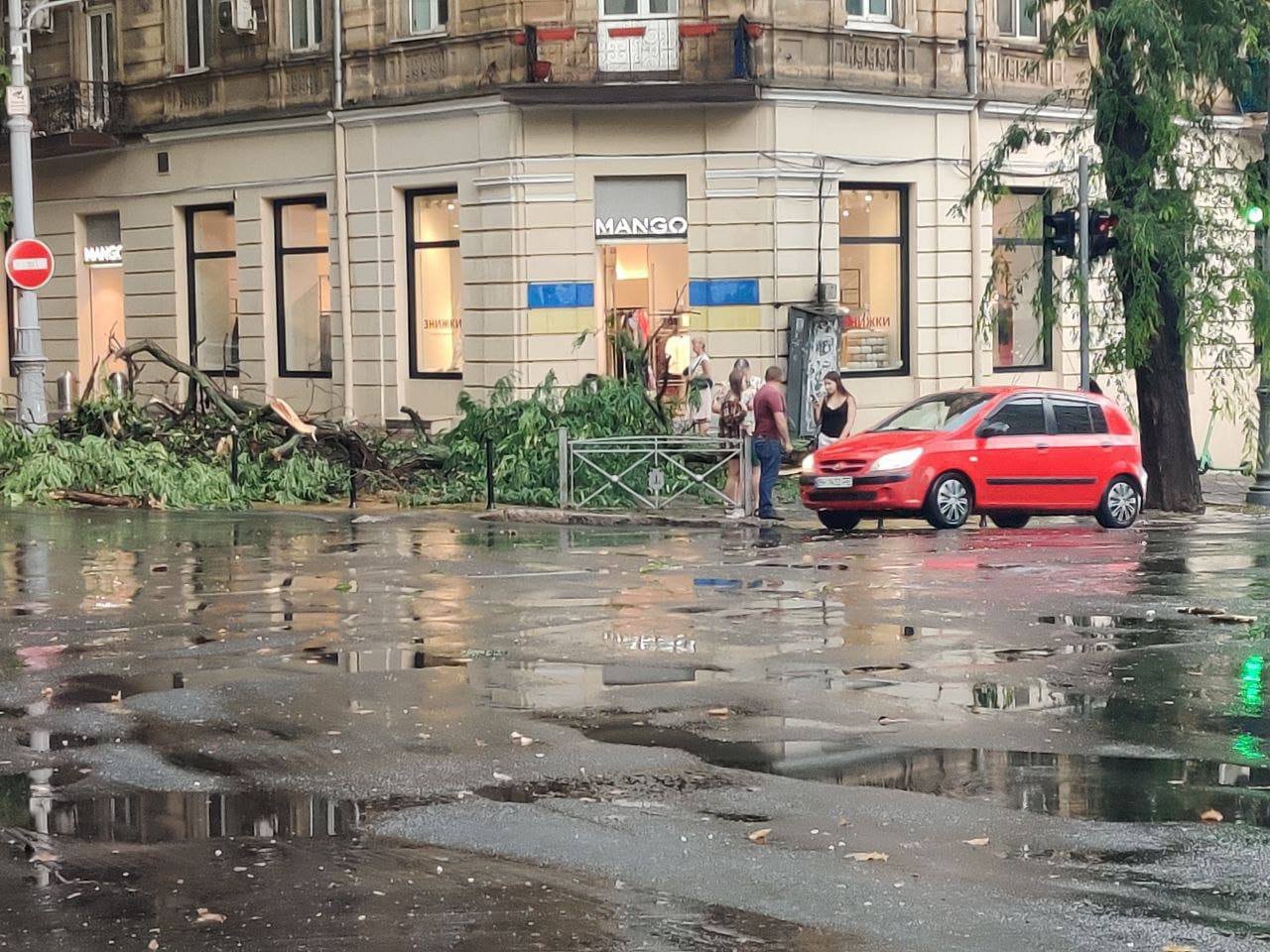 Короткочасна, але потужна злива та шквалистий вітер панували вчора ввечері в Одесі.