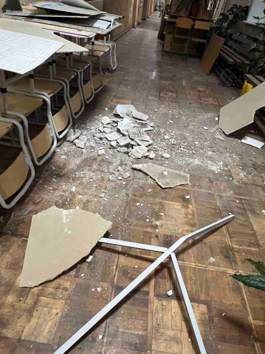 У двох навчальних закладах Одеси пошкоджено стелі, коридори, актові зали й навчальні кабінети. Загальна площа руйнувань — понад 280 кв. м. На стінах з’явилися тріщини, обвалена штукатурка.
