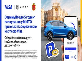 Встановіть та відкрийте MISTO. У кого вже є застосунок, не забудьте його оновити. Додайте і збережіть картку Visa у розділі платіжних засобів. Оберіть місце для паркування і під час оплати вкажіть збережену картку Visa.