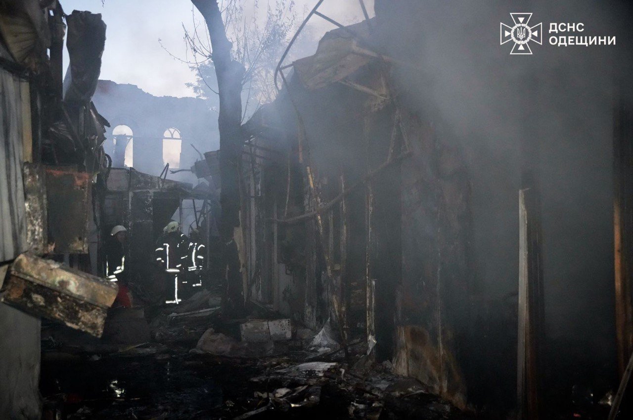 Внаслідок влучань виникла пожежа на радіоринку в Одесі. Вогнем пошкоджено 50 торговельних павільйонів, 8 — зруйновано вщент. На Одещині пошкоджено 2 споруди, 2 склади та приватний будинок. Також через атаку пошкоджень зазнали 6 легкових авто.