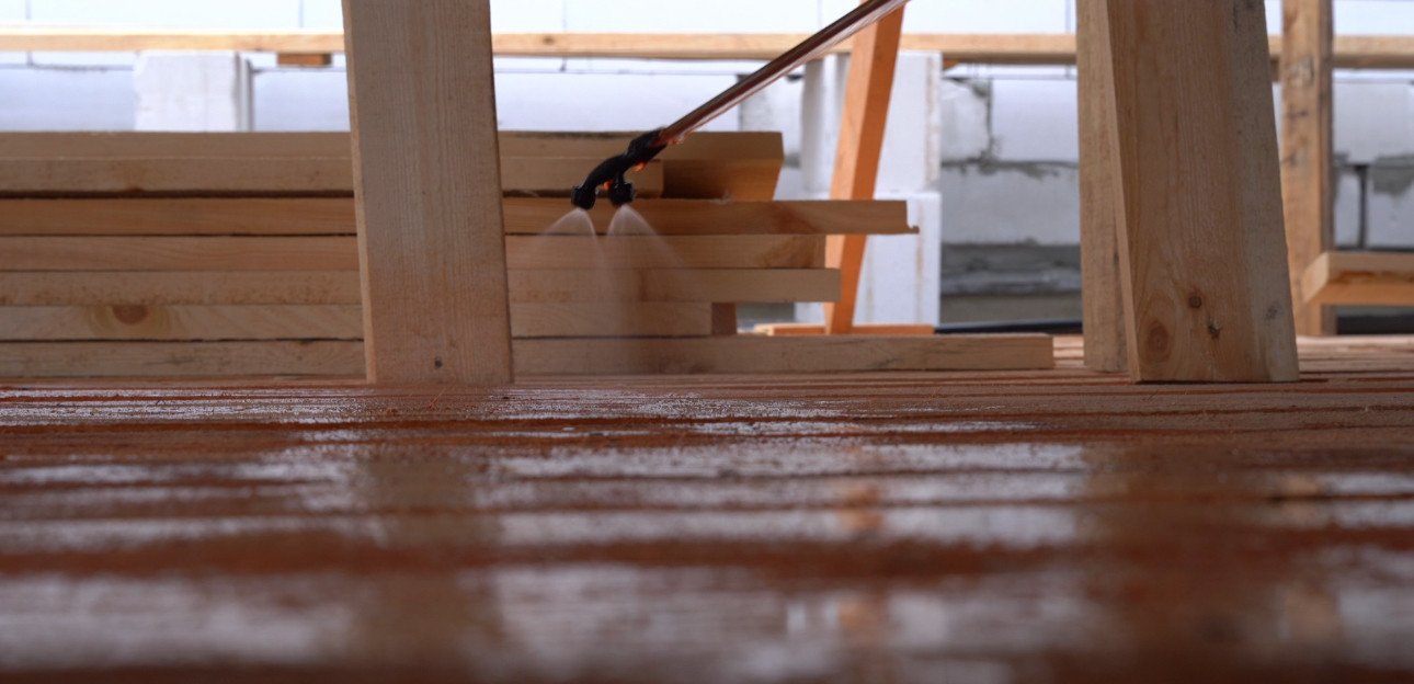 Наступний етап — облаштування армопоясу, монтаж перекриття другого поверху.