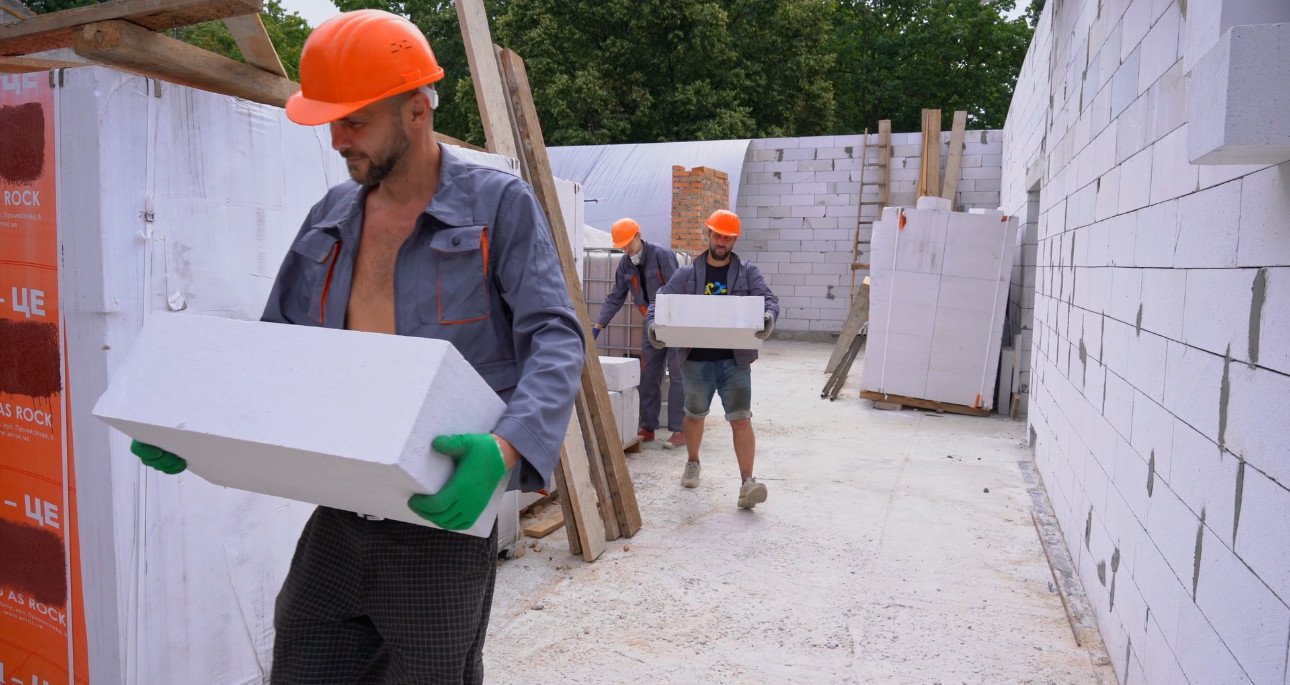 Наразі активні роботи тривають на другому поверсі: мурують нові стіни з газобетонних блоків. Аварійні ділянки вже демонтовано, стіни укріплено, а міжповерхові перекриття замінено новими залізобетонними плитами.