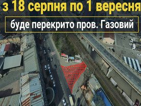 З 18 серпня по 1 вересня тимчасово буде перекритий провулок Газовий — у межах вулиці Приморської. Для уникнення створення заторів у цей період буде дозволено раніше закритий рух транспорту вулицею Приморською у напрямку вулиці Чорноморського козацтва.