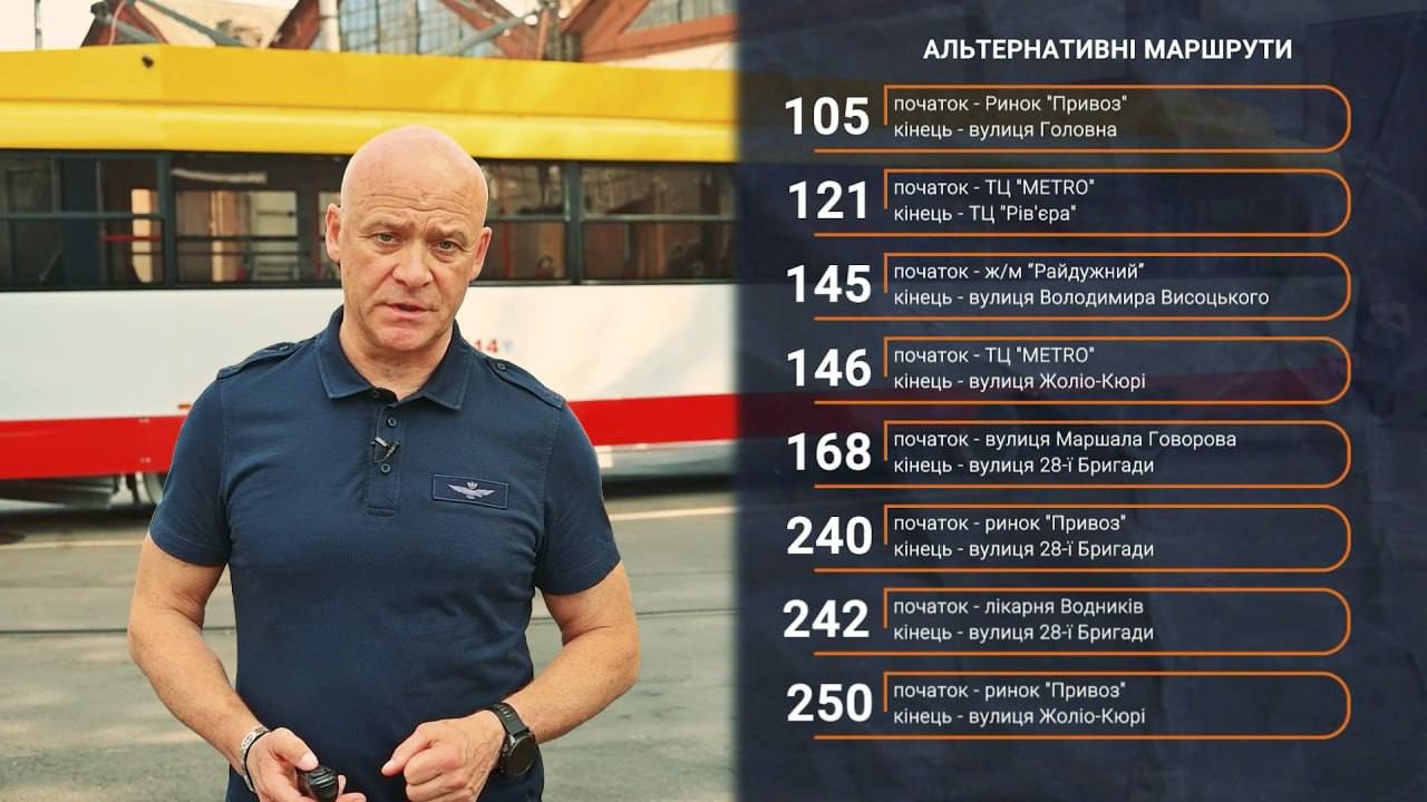 Окрема деталь - рух громадського транспорту. На ділянці вул. Приморської рух тролейбуса №10, автобусів № 110 і 190 залишається без змін. Крім того альтернативними маршрутами є автобуси №105, 121, 145, 146, 168, 240, 242 та 250, що повертаються до штатного графіка у звʼязку з відновленим рухом узвозом Віталія Блажка.