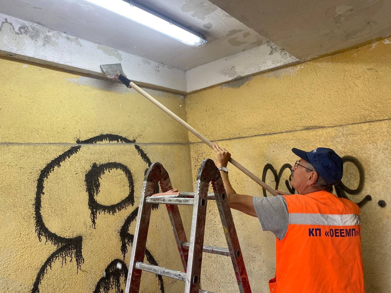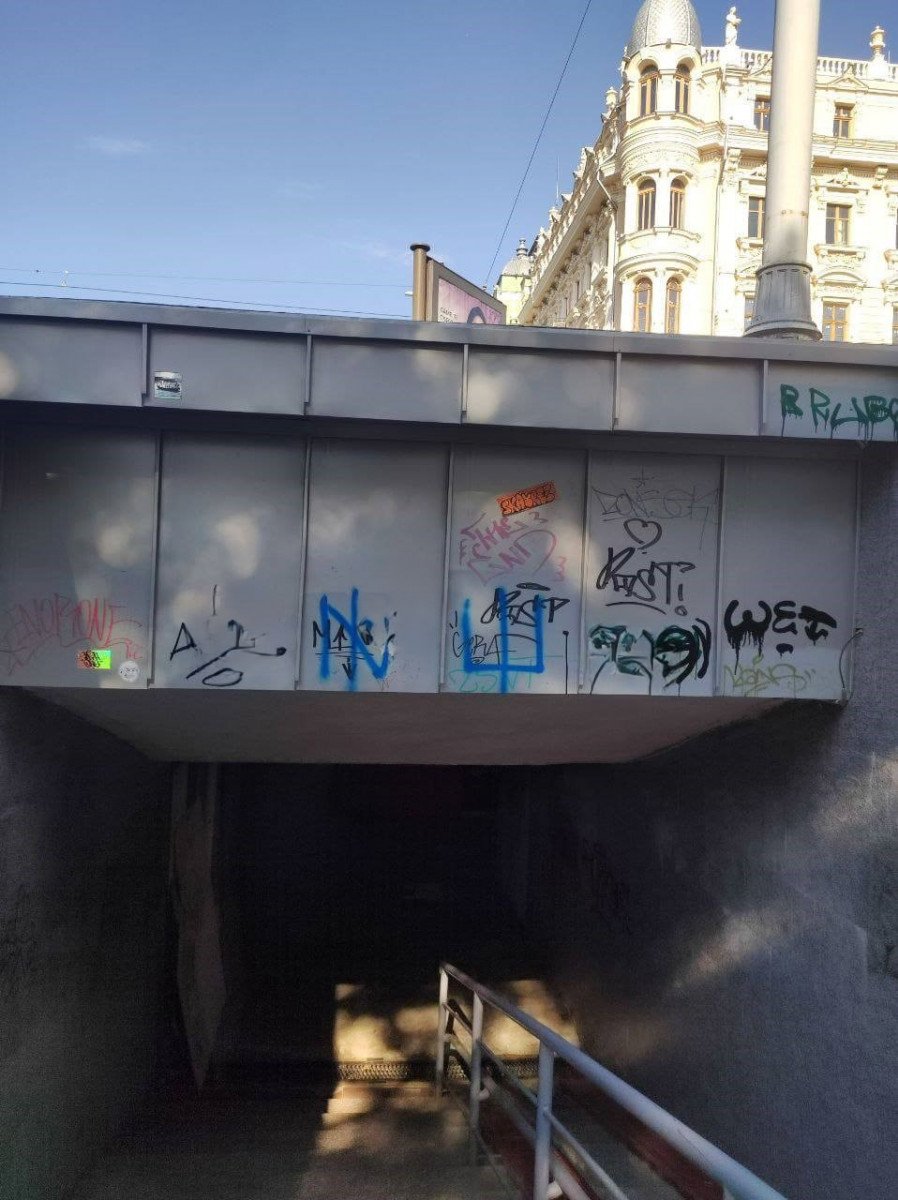 Невідомі знову залишили надписи та малюнки на стінах переходу. До кінця тижня фахівці КП «ОЕЕМП» планують відновити стіни підземного переходу.