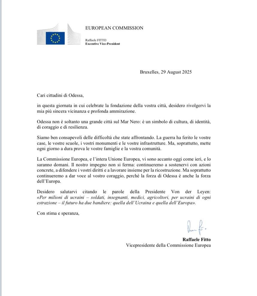 Вітання від виконавчого віцепрезидента Європейської Комісії Раффаеле Фітто: