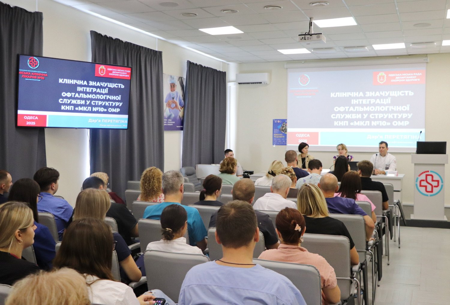 Нова офтальмологічна служба МКЛ № 10 була презентована на конференції, в ході якої обговорили структуру та можливості офтальмологічного сервісу, його інтеграцію та взаємодію з іншими структурними підрозділами та міськими медзакладами. Також для лікарів було проведено майстер-клас з офтальмоскопії.