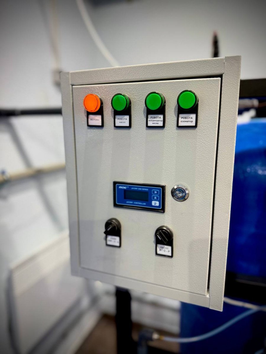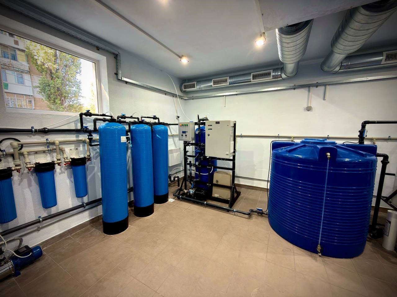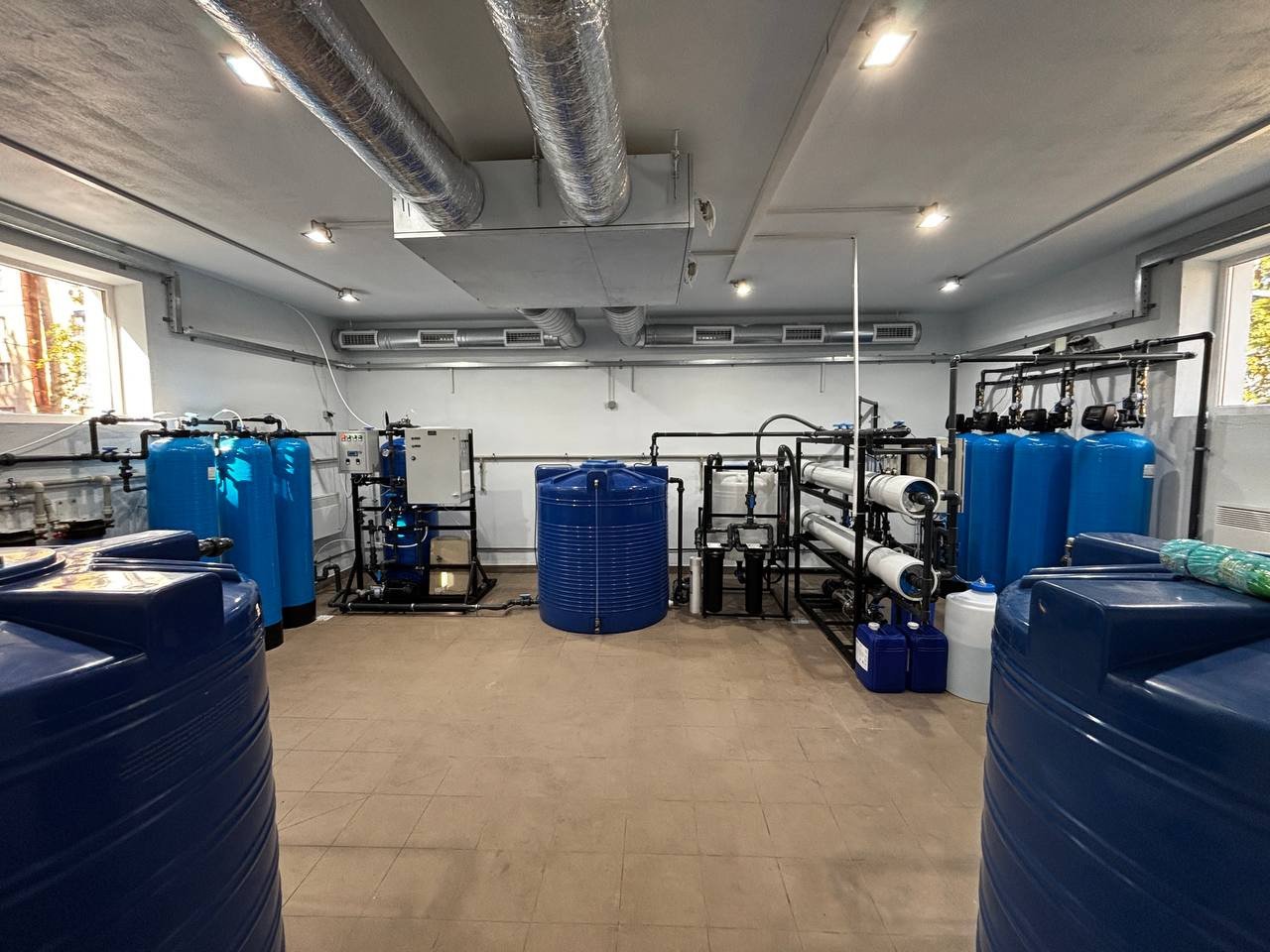 Комплекс обладнано артезіанською свердловиною глибиною понад 115 метрів, з дебітом води 3–4 кубометри на годину. Вода проходить повний цикл очищення: аерування, механічну фільтрацію, зворотний осмос, озонування та сорбційне оброблення через вугільні фільтри.