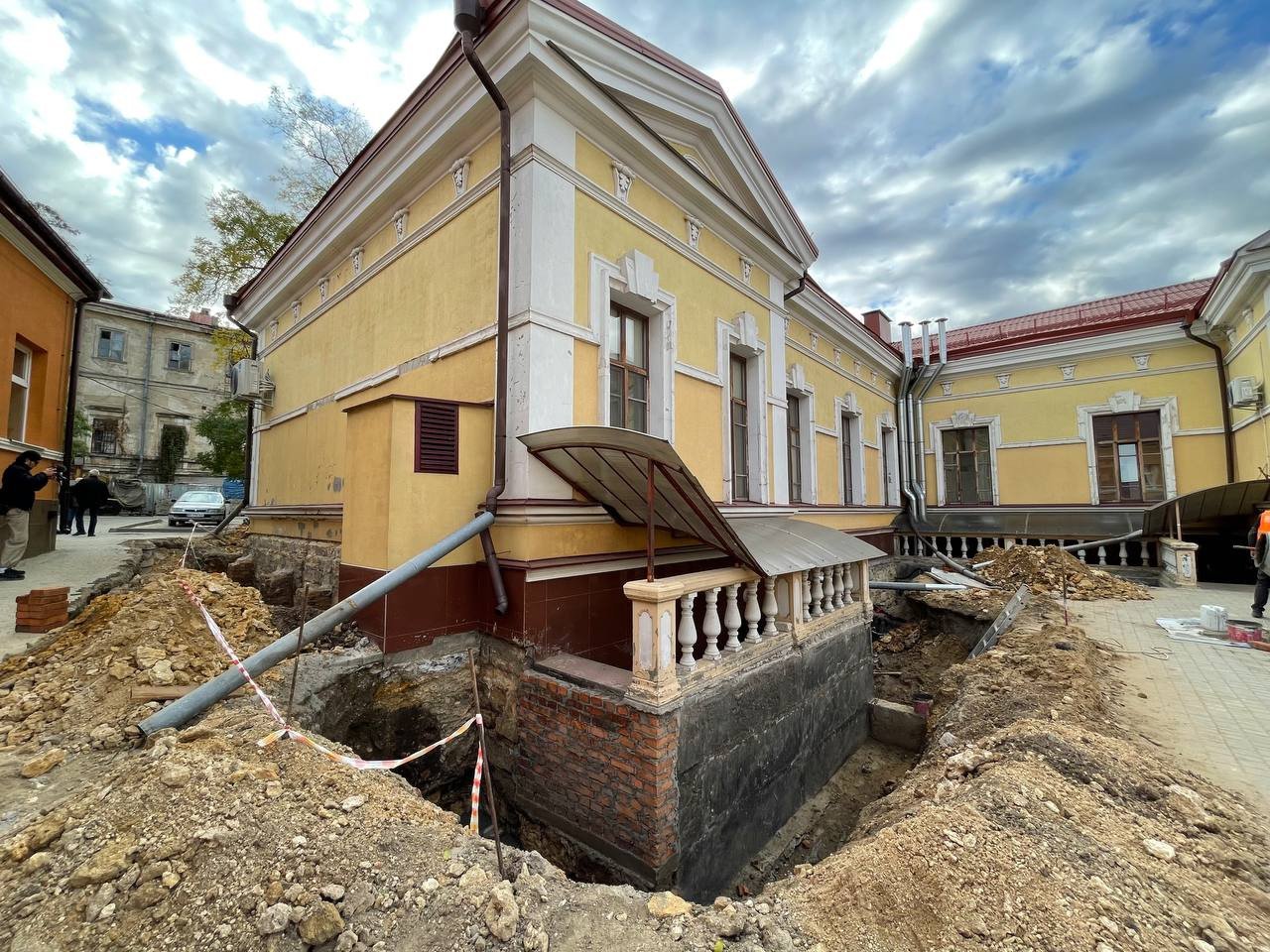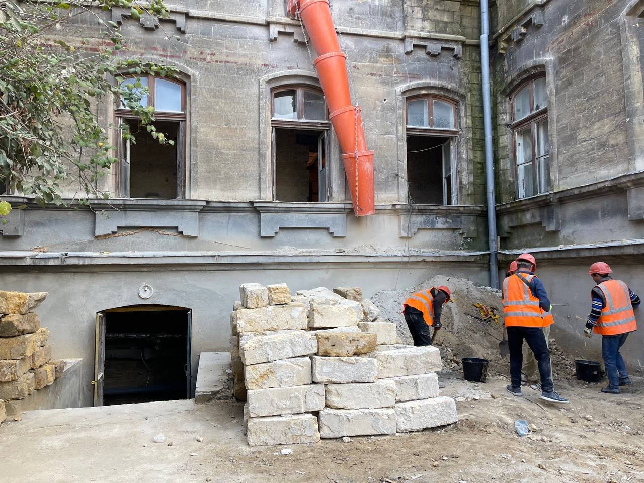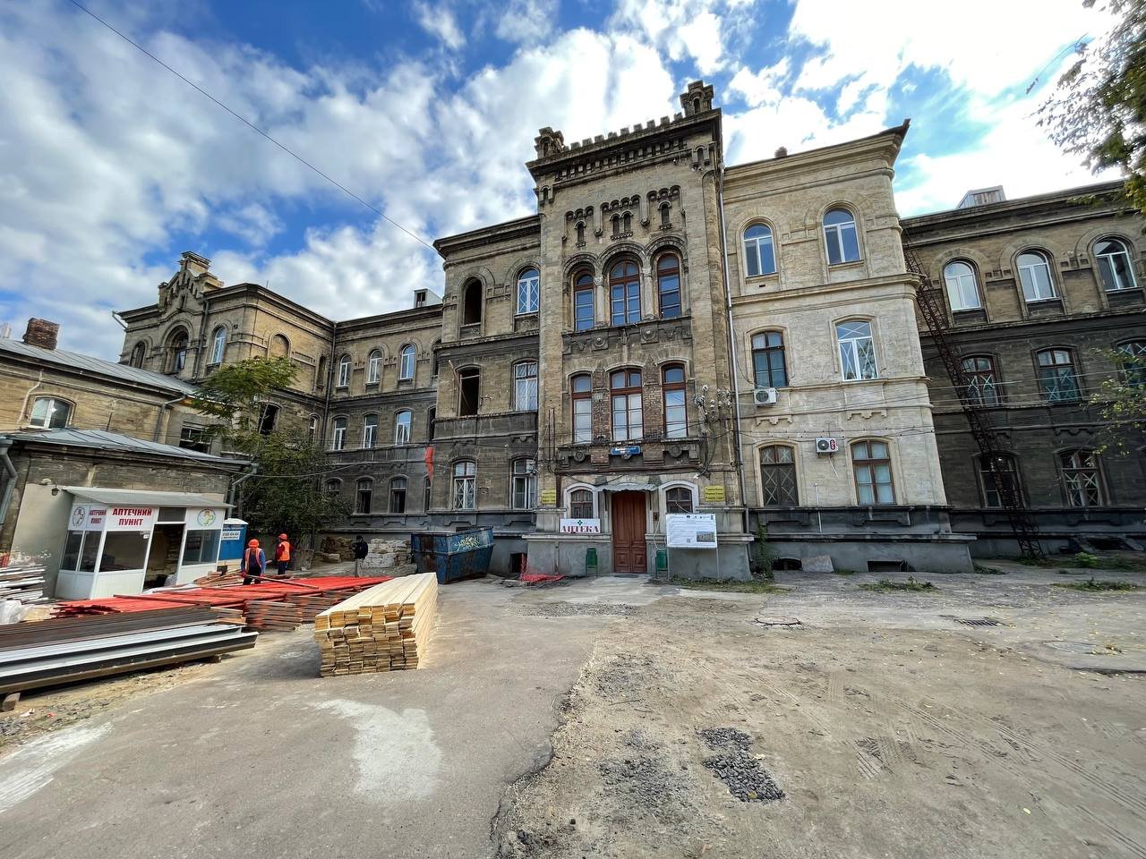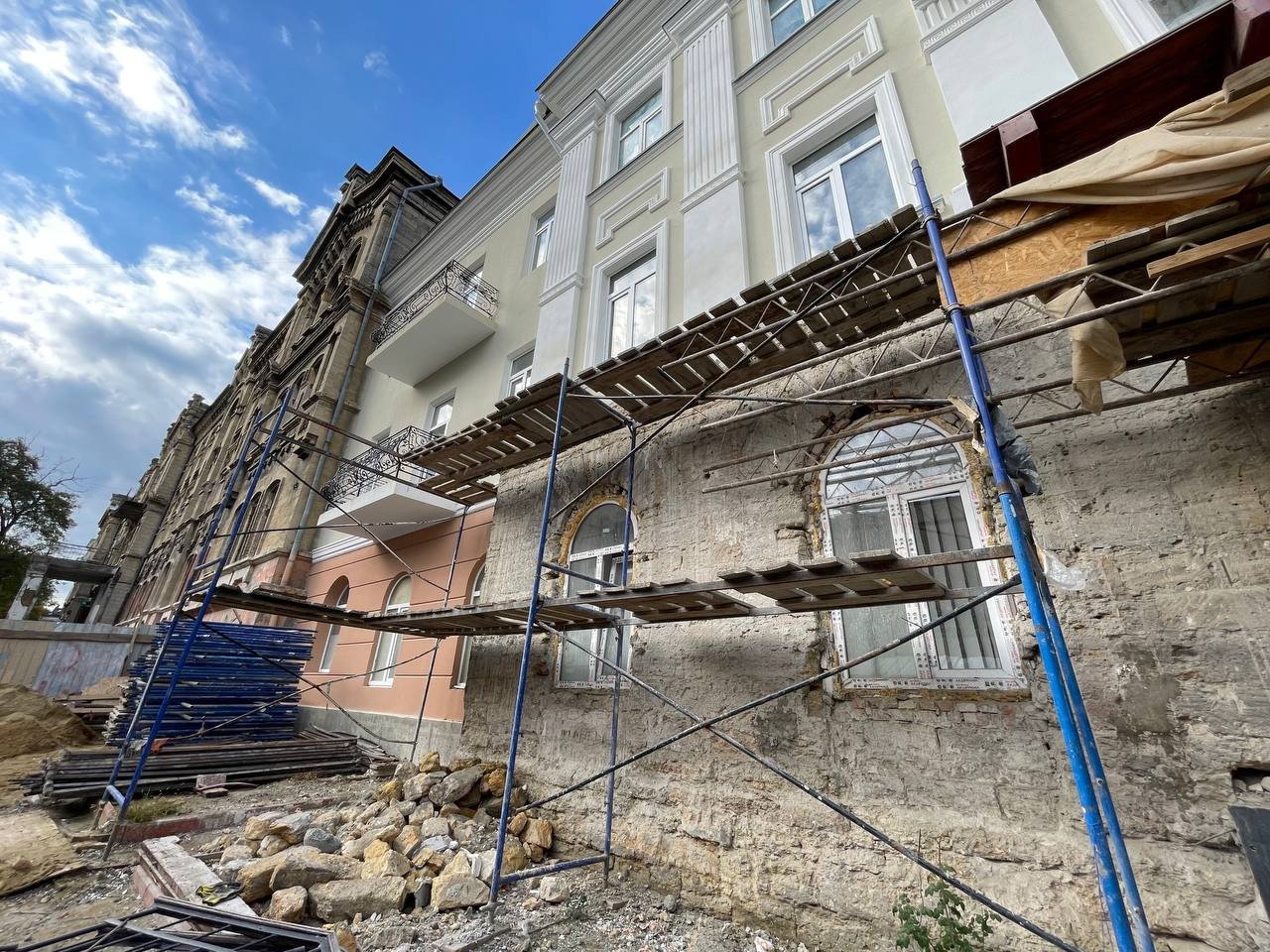 У Валіховському корпусі, який є пам’яткою архітектури, під час ремонту всі конструктивні елементи будівлі буде укріплено, а автентичні деталі інтер’єру та мармурові сходи — відреставровано. Наразі тут виконують демонтажні роботи, зміцнюють конструкції, армують і бетонують перекриття.