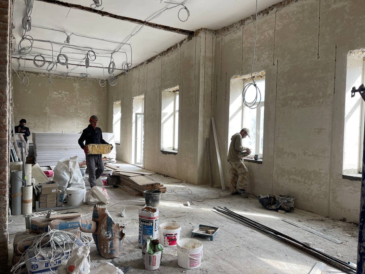 В адміністративному корпусі замінено покрівлю, завершуються роботи з відновлення фасадів. Усередині будівлі триває облаштування перегородок, оздоблення приміщень і заміна інженерних систем — вентиляції, водопостачання, каналізації та електропостачання.