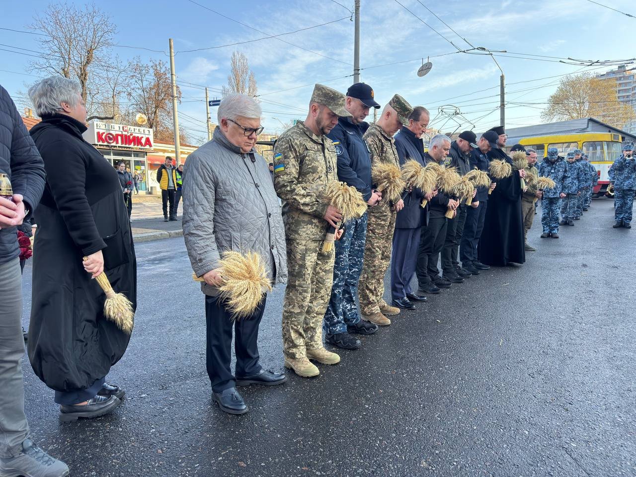 З нагоди скорботної дати на бульварі Гетьмана Сагайдачного в Одесі відбувся ритуал покладання квітів та композицій із житніх і пшеничних колосків до пам’ятного знака жертвам Голодомору в Україні.