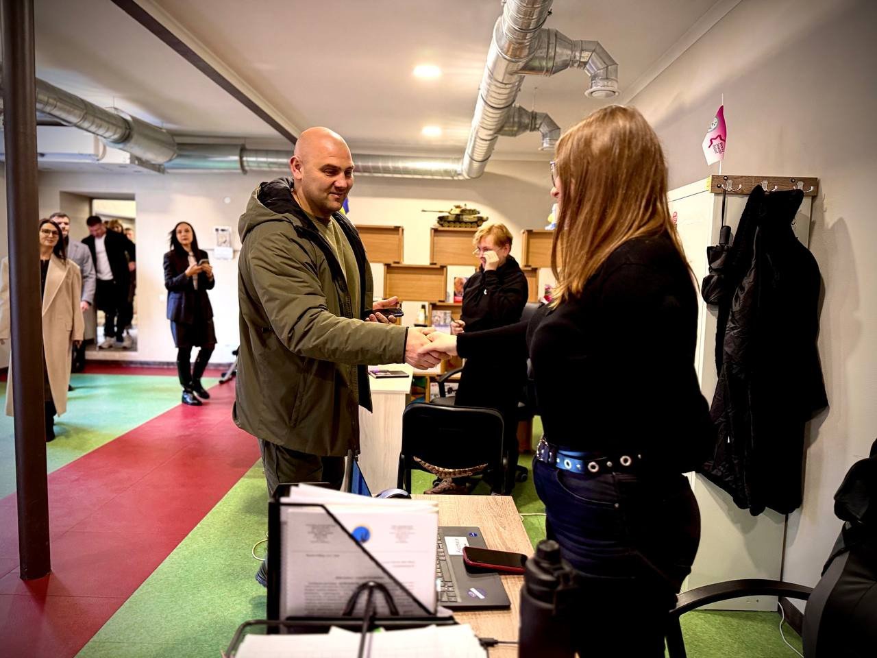 Свою роботу в місті він розпочав із відвідування простору громадської організації Veterans HUB, де за круглим столом зібралися представники законодавчої та виконавчої влади, очільники міста, керівники комунальних та неурядових установ, що реалізовують ветеранську політику, а також самі ветерани.