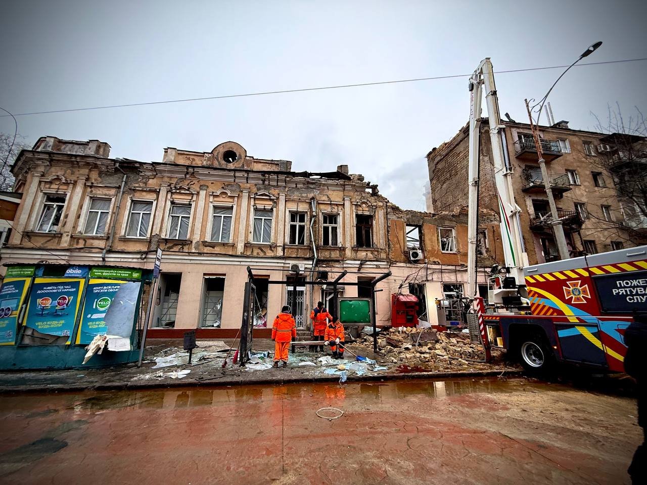 На місцях влучань комунальні та екстрені служби продовжують ліквідацію наслідків атаки.