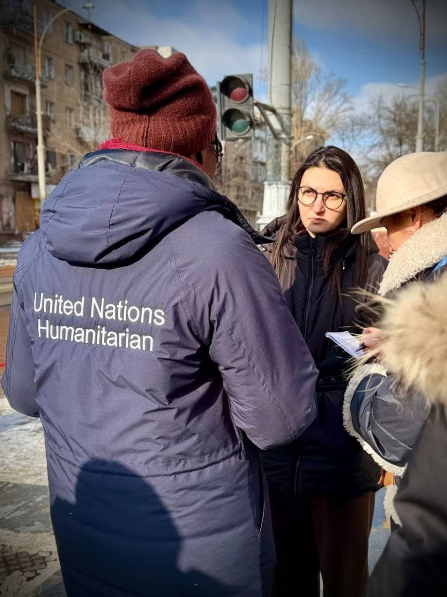 Делегація УКГС ООН відвідала одне з місць останнього удару в центральній частині міста, щоб на власні очі побачити масштаби руйнувань.