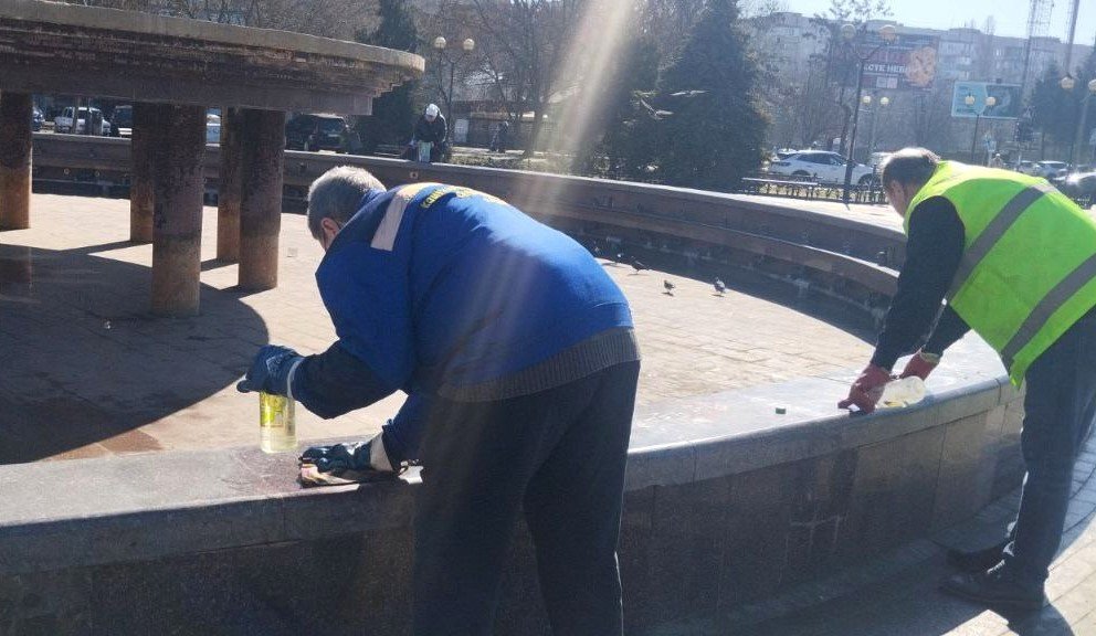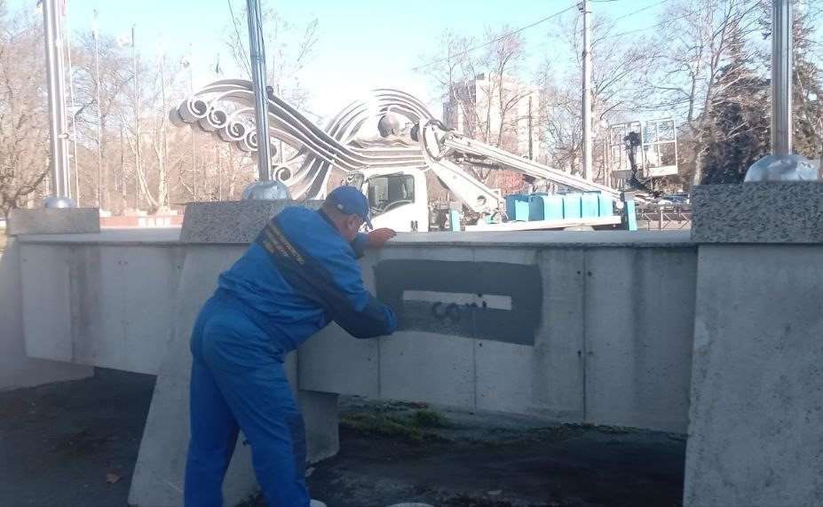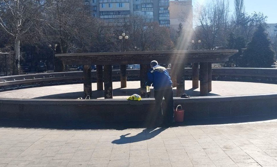 Працівники підприємства оперативно очистили від вандальних написів і малюнків чашу фонтана та привели в належний стан територію навколо.