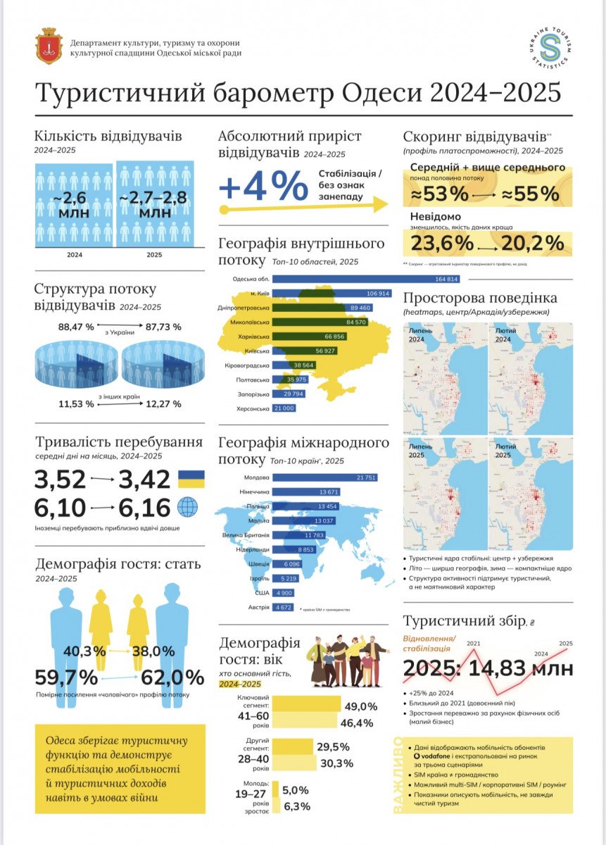 Щоб розуміти реальну картину та допомагати місцевому бізнесу адаптуватися до нових умов, Департамент культури, туризму та збереження культурної спадщини підготував Статистичний довідник «Туристичний барометр Одеси».