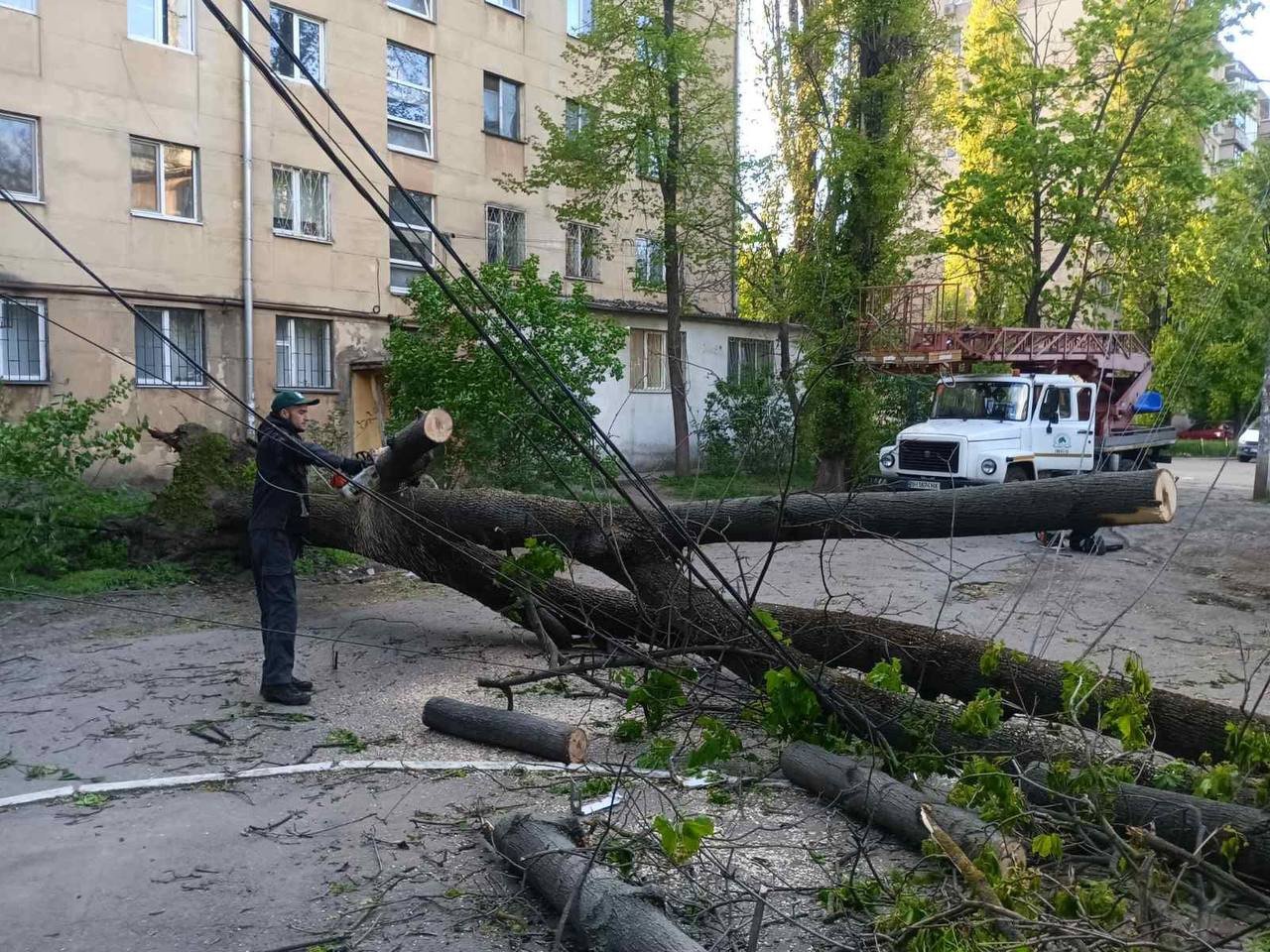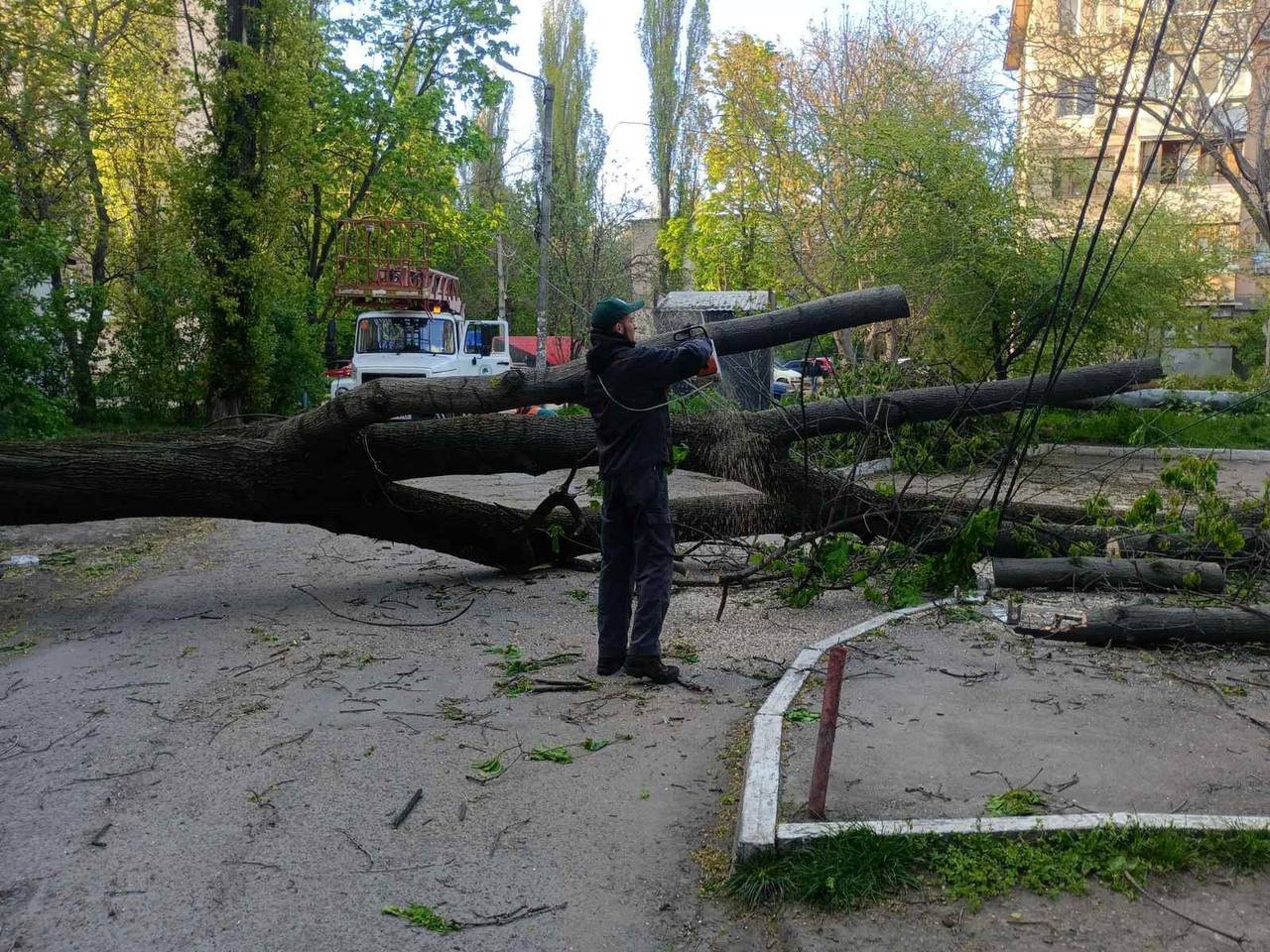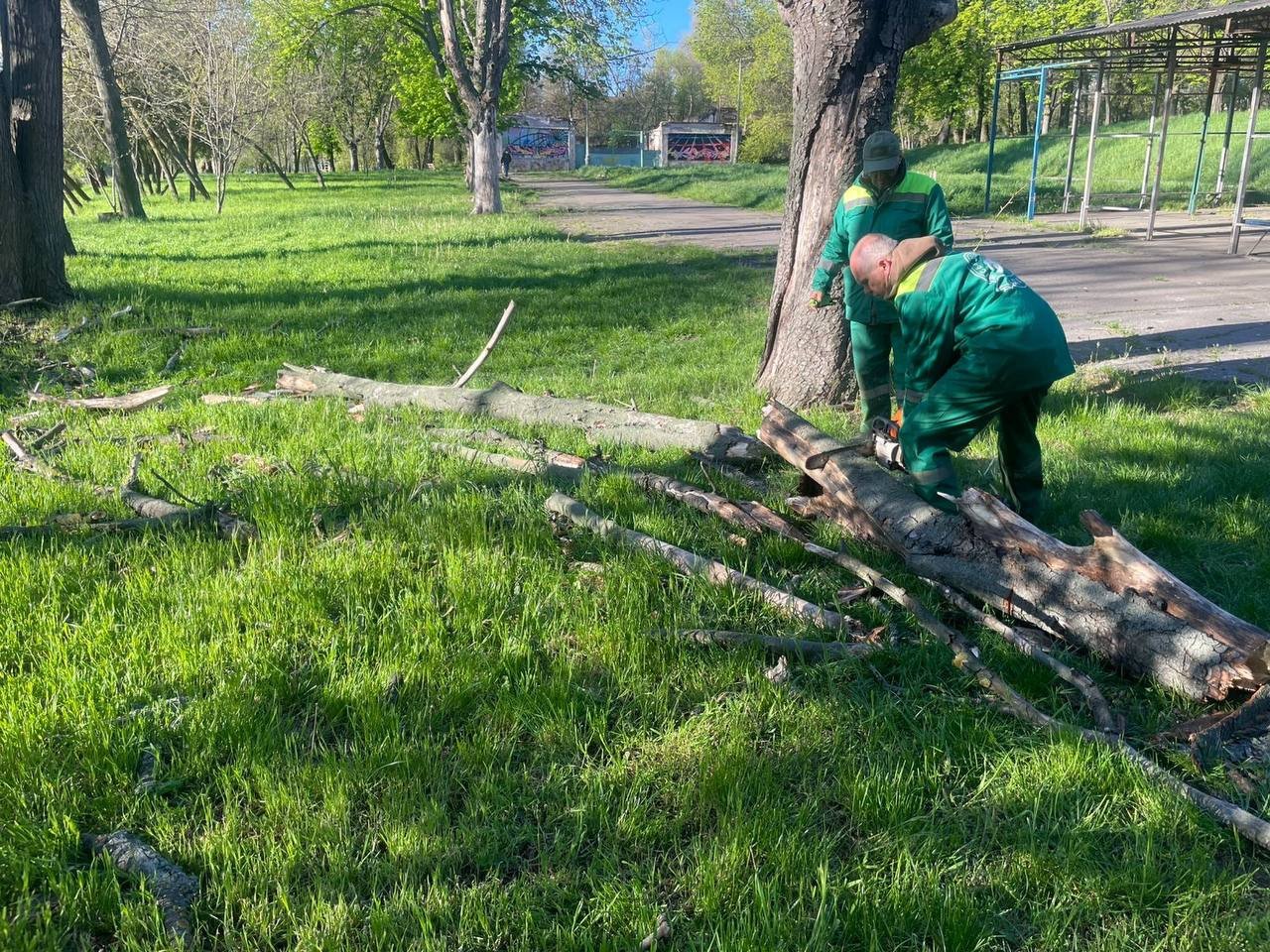 Найперше фахівці КП «Міськзелентрест» і КП «Міські дороги» звільняють від повалених дерев дороги, автомагістралі, пішохідні доріжки, а також прибирають дерева, які заважають проїзду до соціально значущих об'єктів.